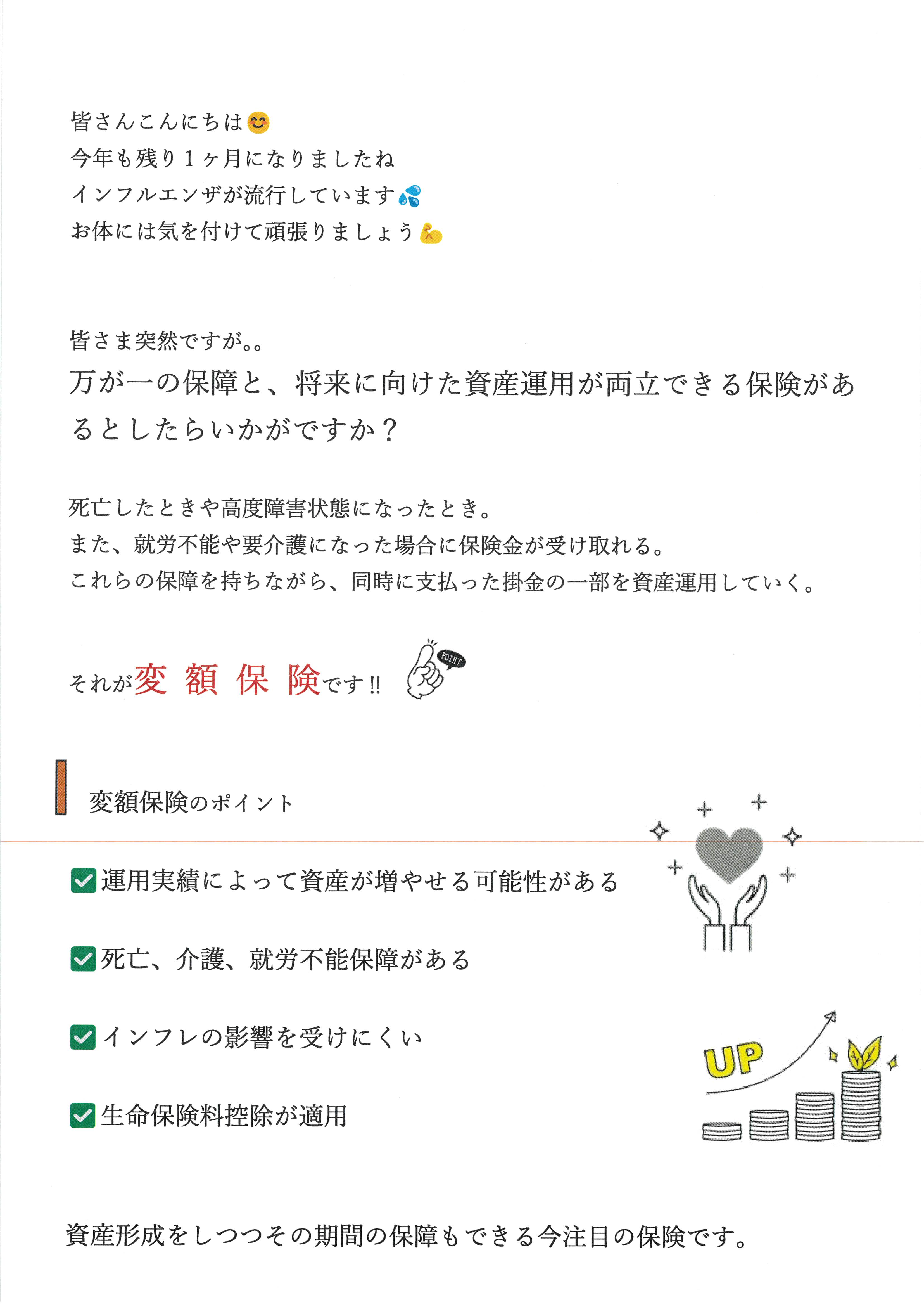 万が一の保障と資産運用が両立できる保険✨新✨12月2日~変額保険がリニューアル💡